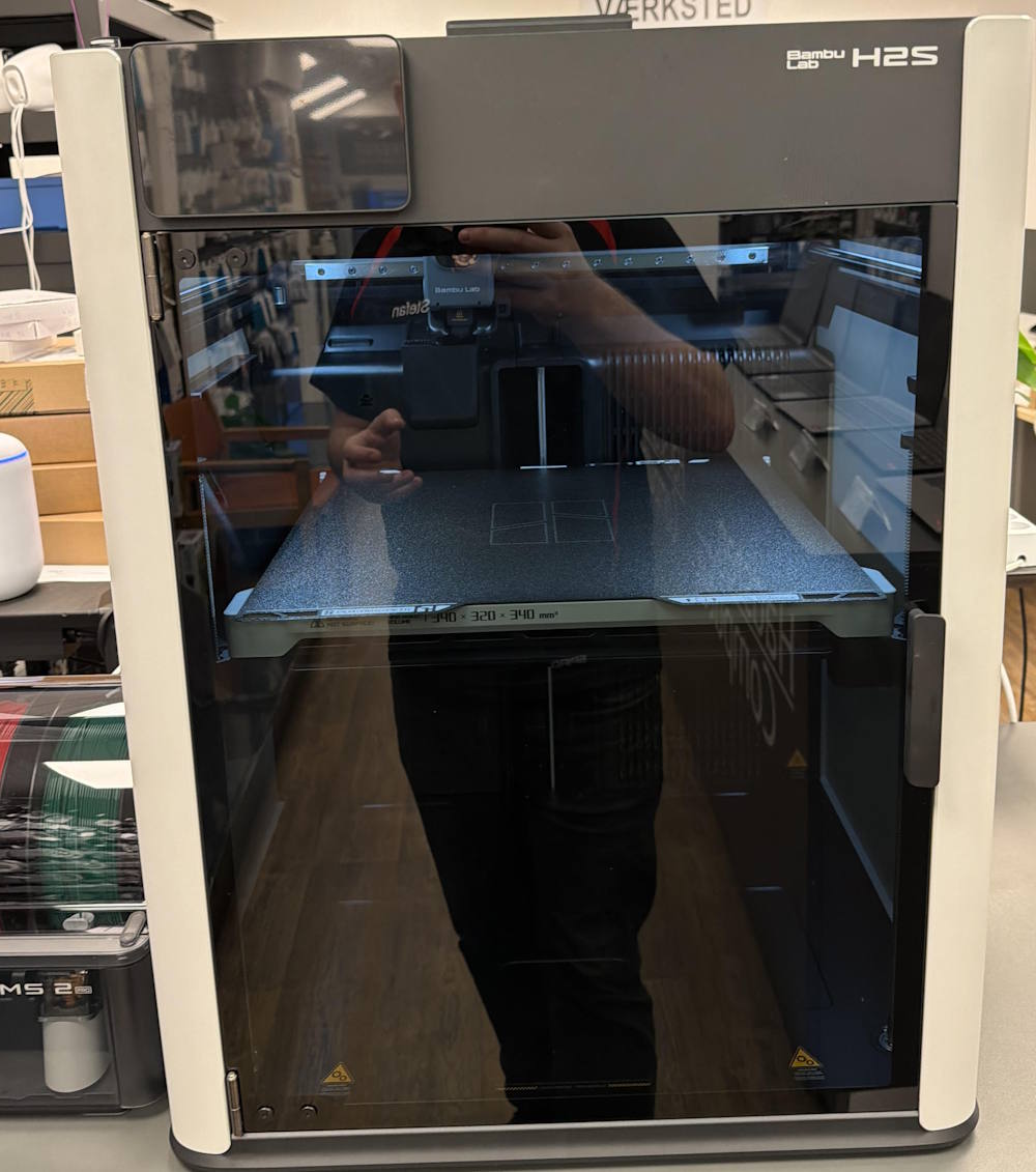 Vi bruger en 3D Printer Bambu H2S laserprinter med AMS2 Pro.