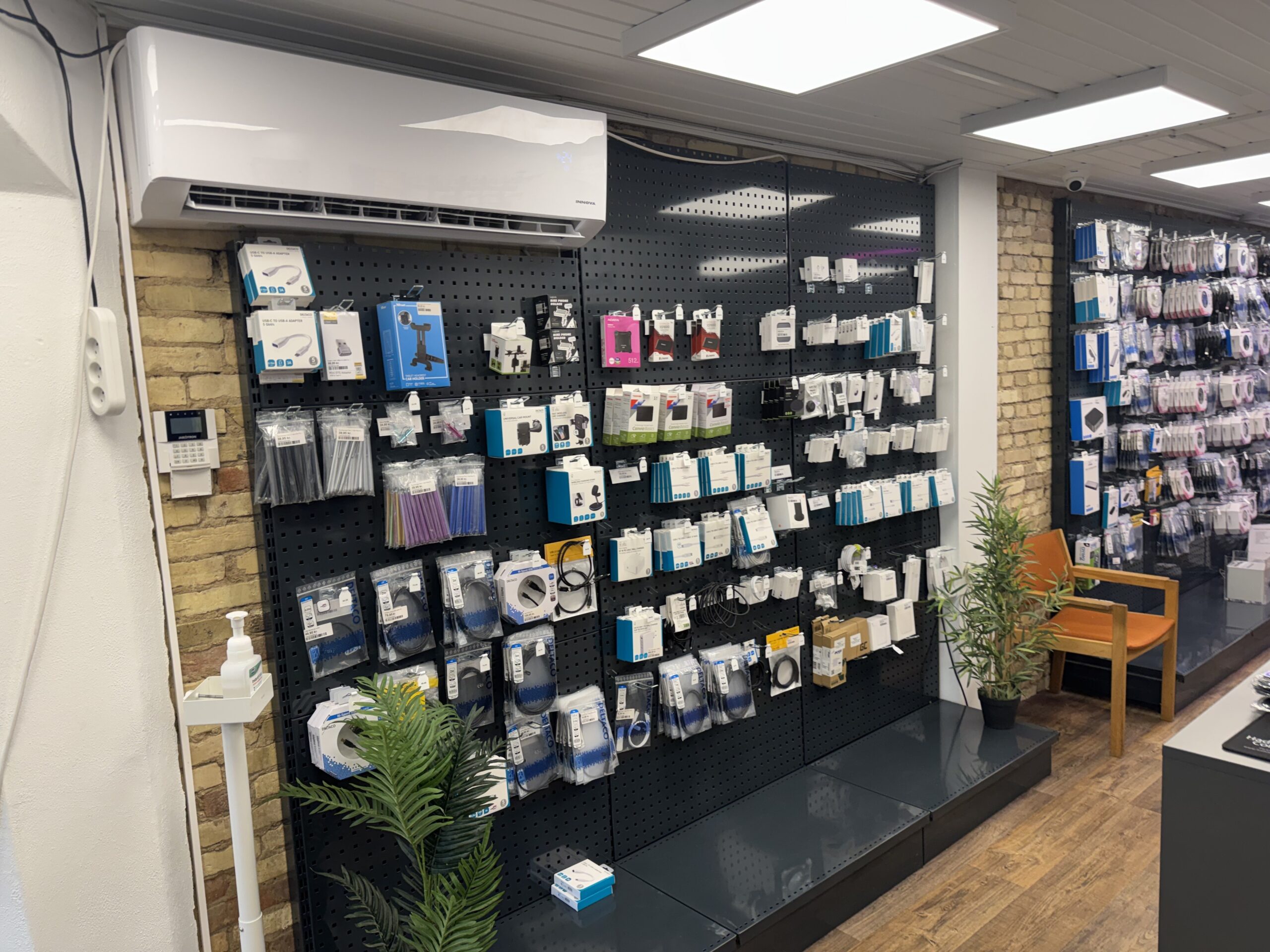 I vores computerbutik har vi et værksted, hvor vi reparerer computere, iPhones og andet elektronik. Det er værkstedet, der er vores levebrød, og derfor kan vi tilbyde ekstra skarpe priser i butikken.