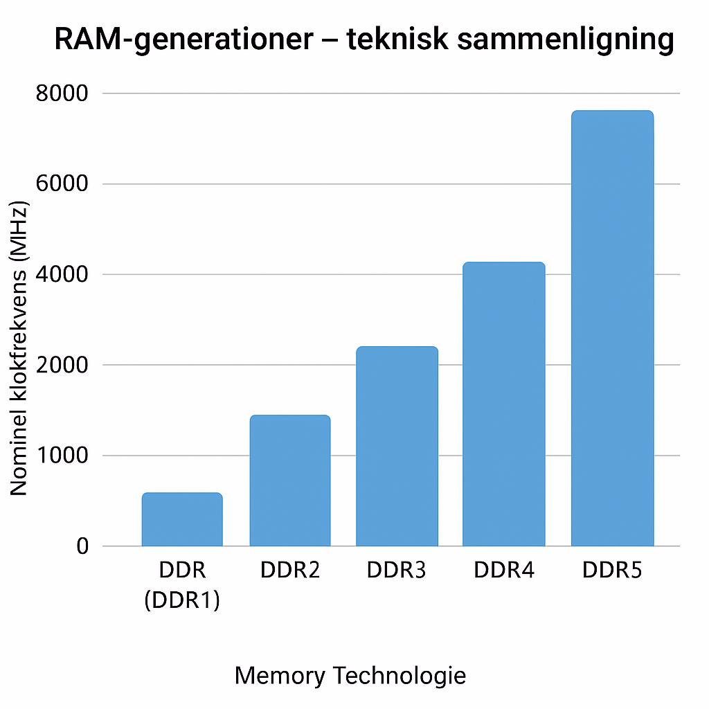 Ram du benytter i 2024-2026 er DDR4 ram, eller DDR5 ram.