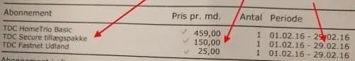 Som I kan se på kundens regning, koster TDC Secure tillægspakke 150 kr. pr mdr. Det er 1.800 kr. om året.