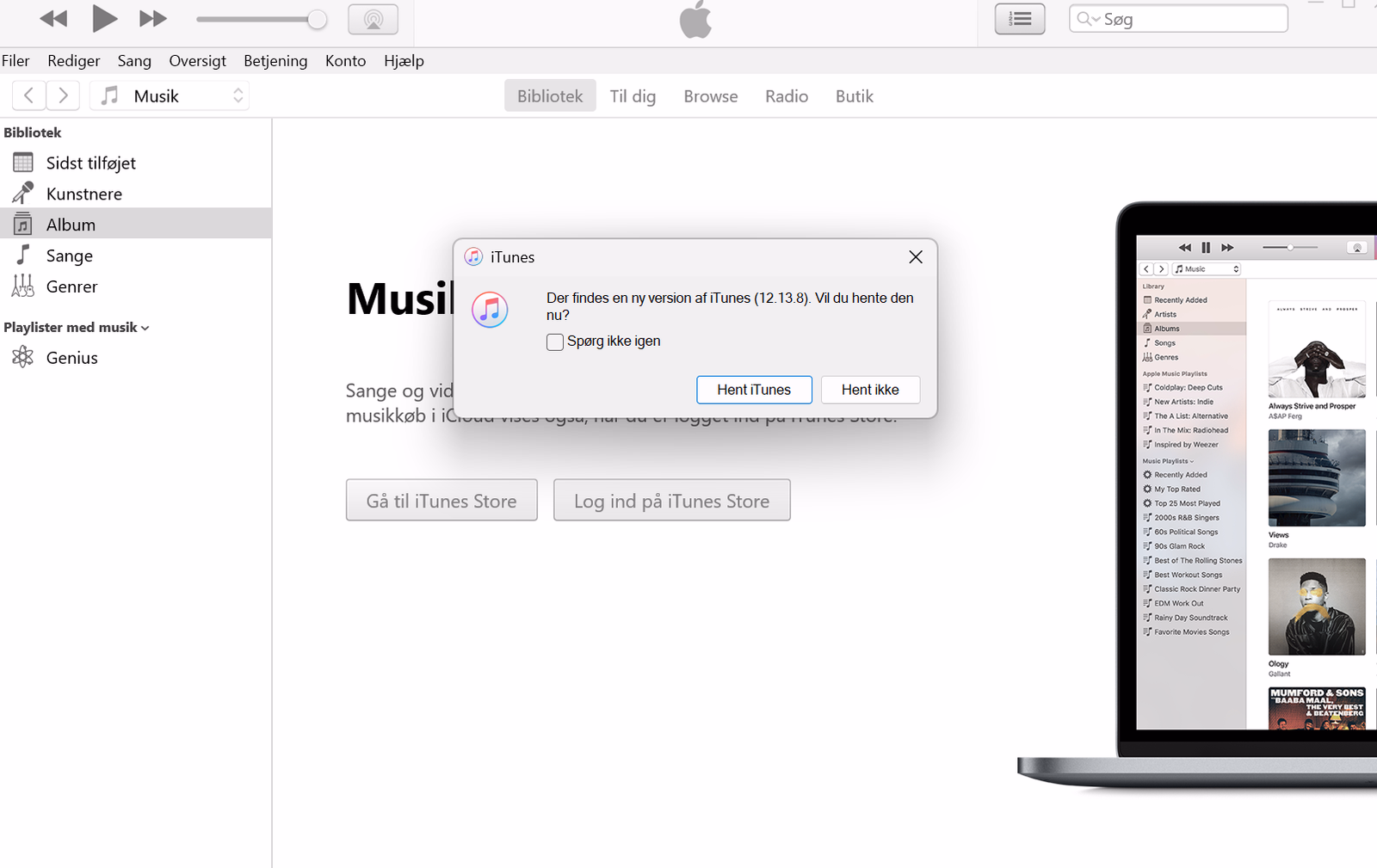 For at hente iTunes, klik her for at gå ind på apples hjemmeside og hente iTunes.